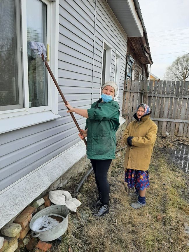 Проводятся работы по оказанию помощи на дому, чистке окон, по уборке жилых помещений, и придомовых территорий от мусора.