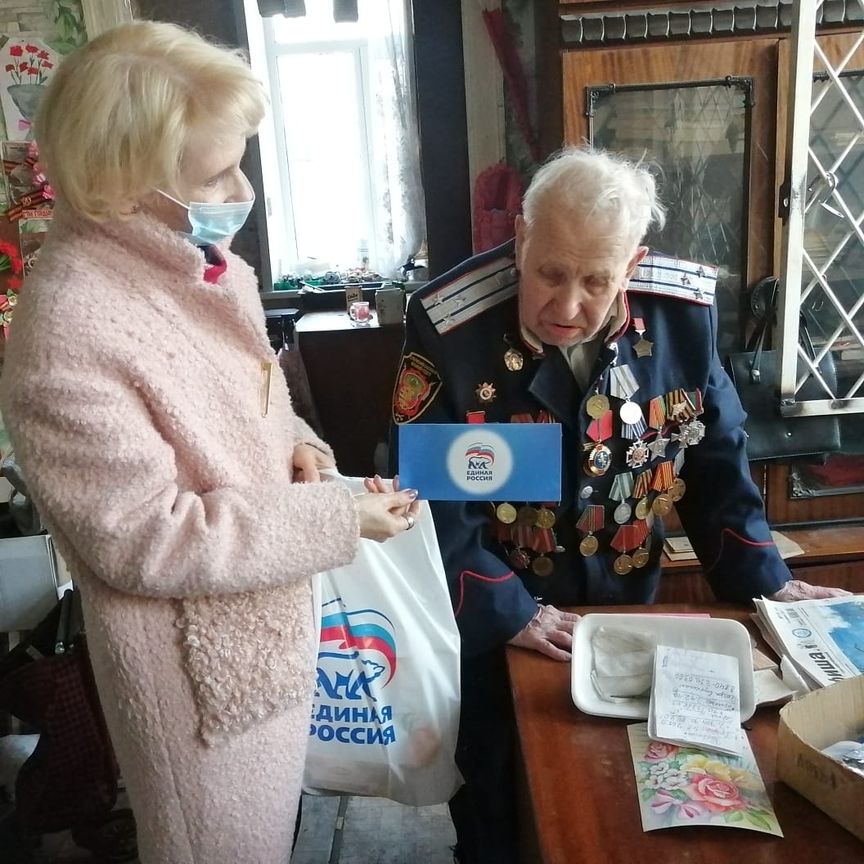 Также с днем рождения и в преддверии празднования Дня Победы пришли поздравить нашего ветерана сотрудники местного отделения партии «Единая Россия» г. Гусь-Хрустальный и пожелав имениннику здоровья и мира, вручили ему памятные подарки.