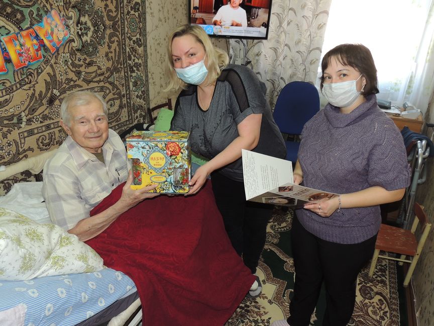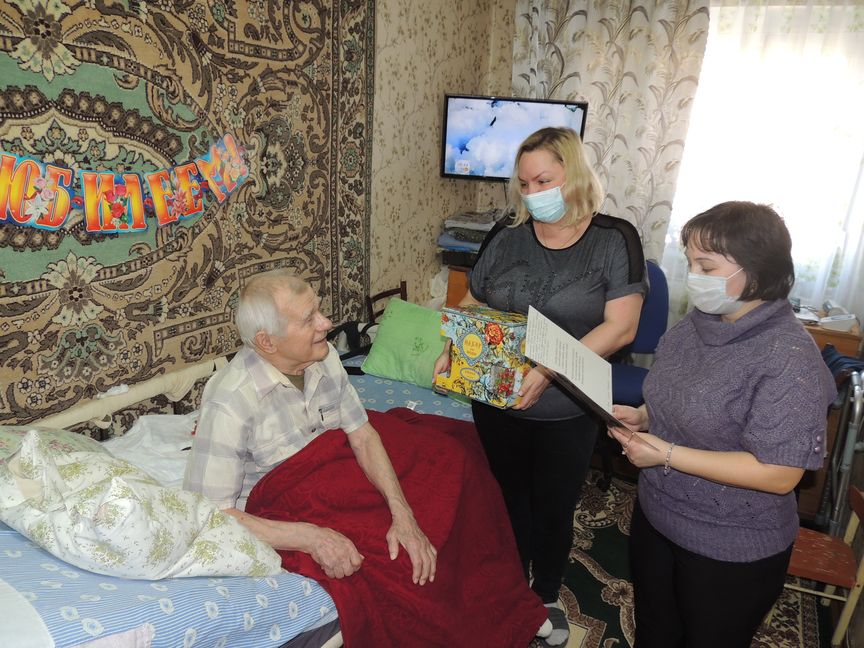 Социальный работник Галина Гущенко и заведующий отделением социального обслуживания на дому Наталья Ишмуратова поздравили его с юбилеем, пожелали крепкого здоровья, радостных дней и долгих лет жизни.