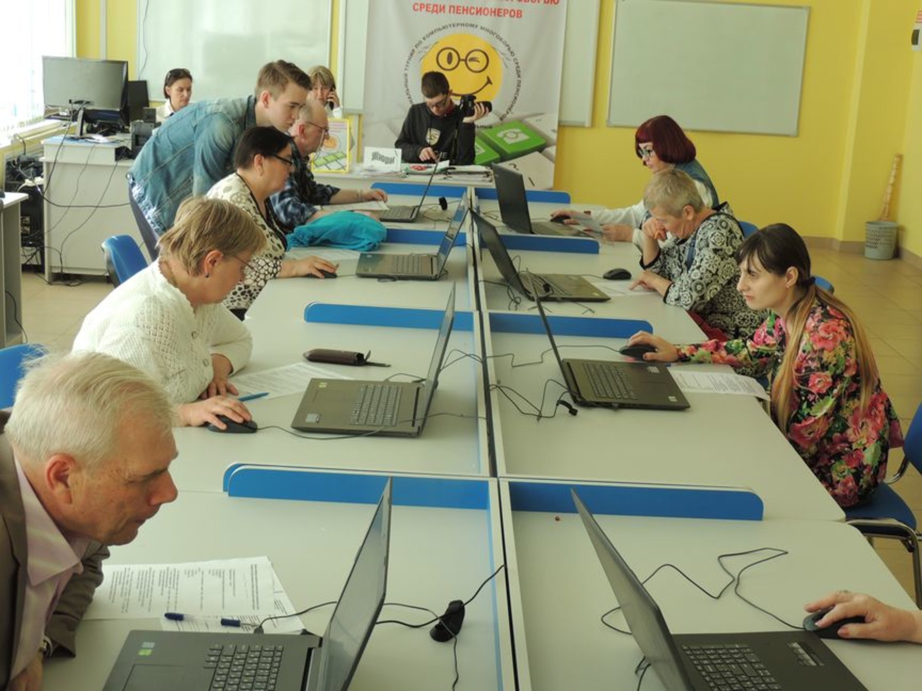 25 апреля в Гусь-Хрустальном районе прошёл муниципальный этап IХ регионального чемпионата по компьютерному многоборью среди пенсионеров. Турнир проходил на базе ГБПОУ ВО «Гусевский Стекольный Колледж». Со вступительным словом выступила заведующая учебной части заочного отделения, руководитель курсов дополнительного образования Елена Юрьевна Капустина. В конкурсе приняли участие 8 человек. Им предлагались теоретические вопросы по компьютерной грамотности, практические задания по созданию документов в офисных программах, работа в информационных и поисковых системах. Борьба была напряженной. Члены жюри долго обсуждали итоги чемпионата. В номинации «Уверенный пользователь ПК» I место заняла Елена Павловна Федотова, в номинации «Начальный пользователь ПК» I место занял Белогорлов Евгений Юрьевич.