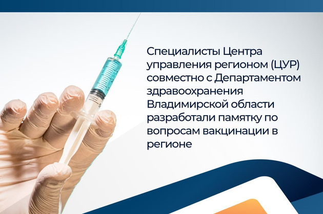 Специалисты Центра управления регионом (ЦУР) совместно с Департаментом здравоохранения Владимирской области подготовили памятку для жителей региона по вопросам вакцинации от Covid-19.